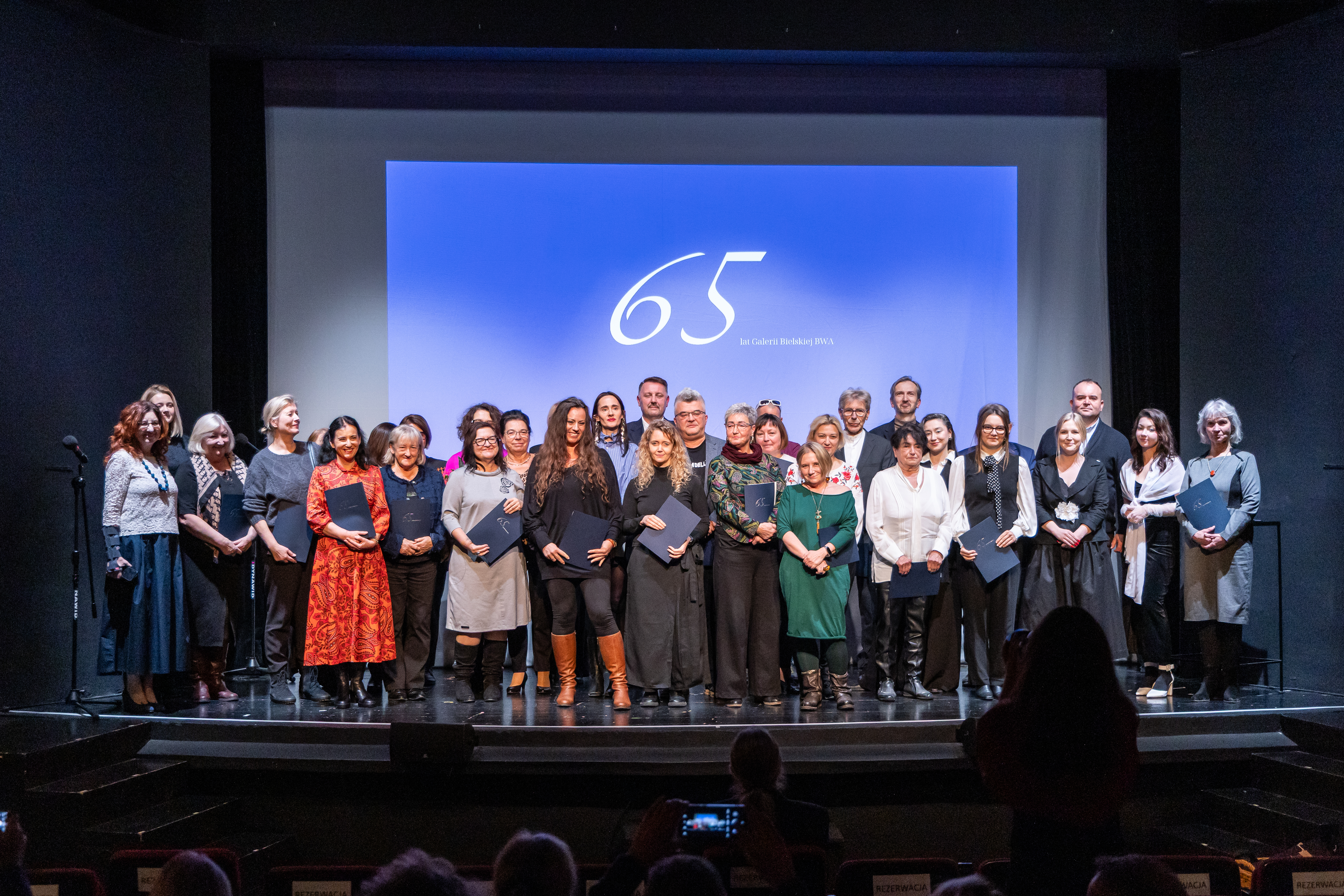 Krótkim przeglądem artystycznych wydarzeń z minionych dekad podsumowała 65-lecie Galerii Bielskiej BWA jej dyrektorka Agata Smalcerz. Uroczystość odbyła się 27 listopada w Teatrze Lalek Banialuka, w obecności wielu oficjalnych gości, ale przede wszystkim przyjaciół i przyjaciółek galerii oraz osób związanych z nią obecnie i przed laty.