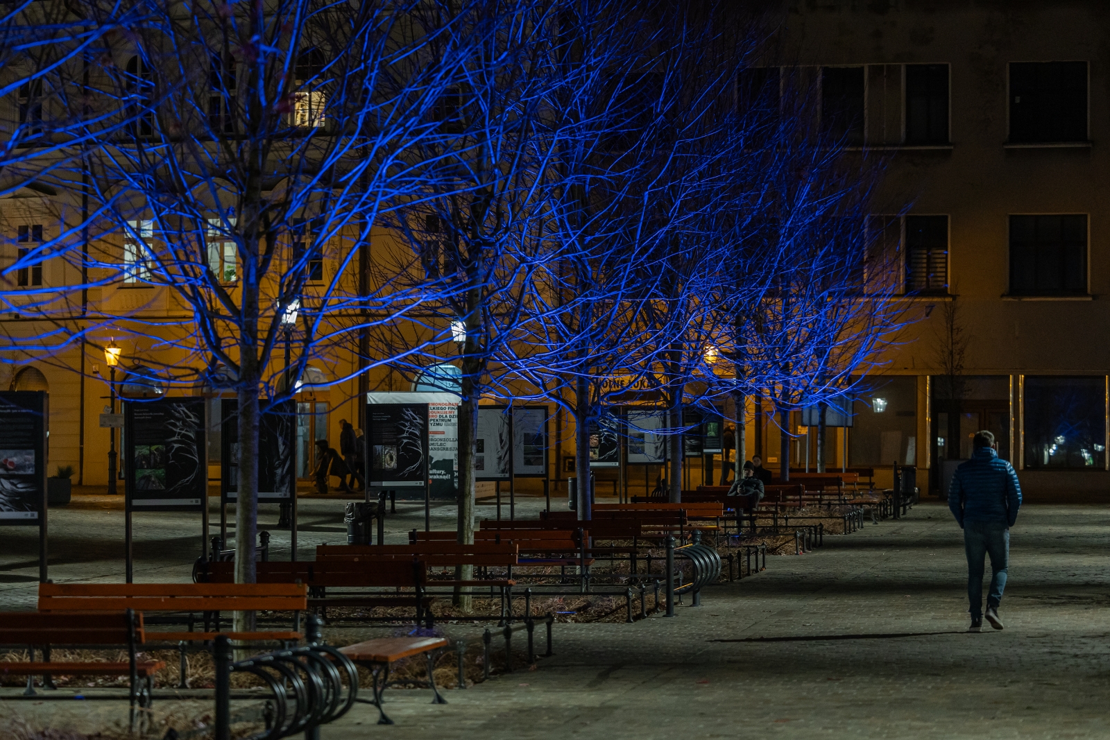 W Międzynarodowym Dniu Praw Dziecka most na rzece Białej w ciągu ulicy 11 Listopada oraz drzewa na placu Wojska Polskiego są podświetlone na kolor cyjanowy (niebieski).