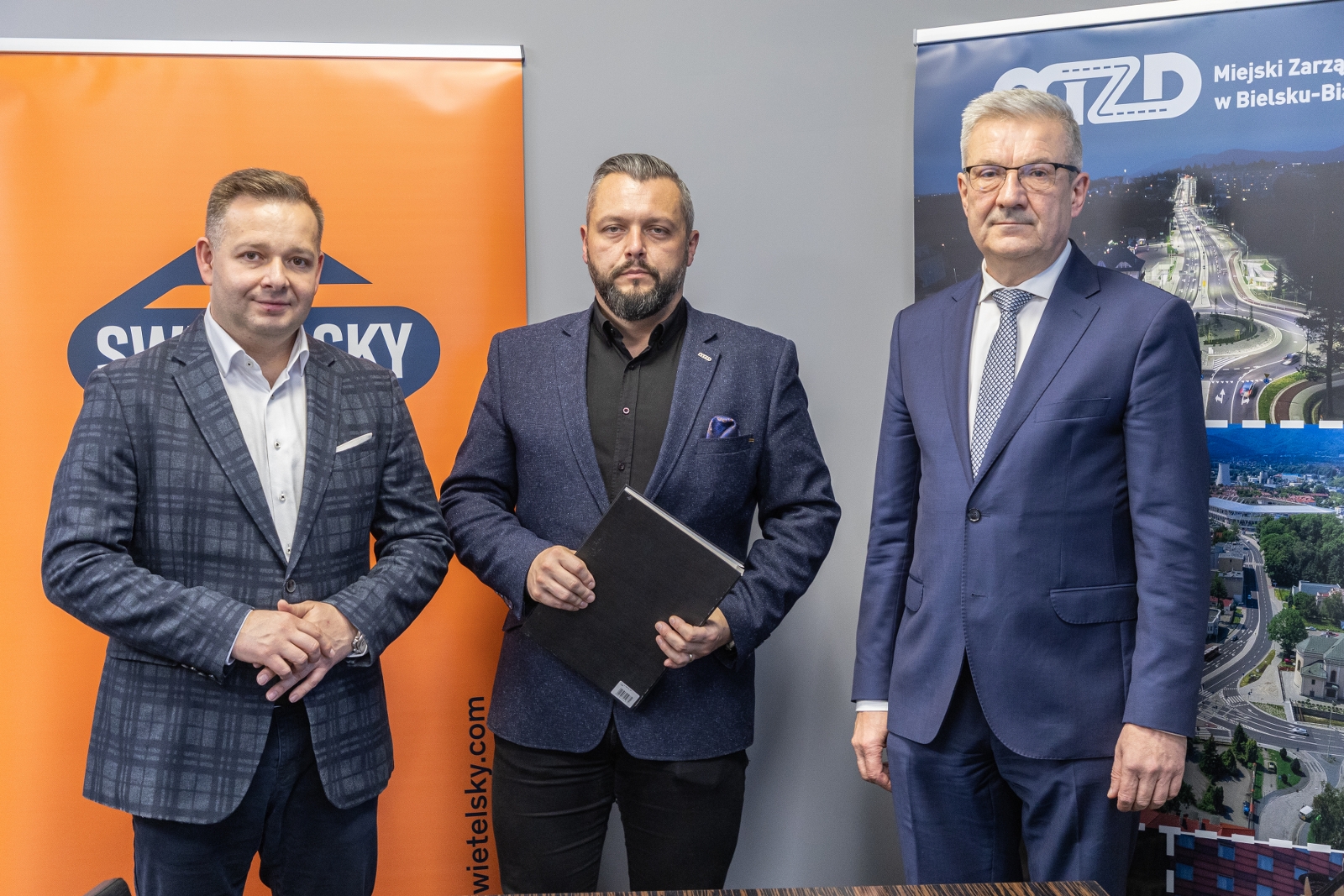 W obecności zastępcy prezydenta Bielska-Białej Przemysława Kamińskiego dokument podpisali dyrektor MZD Patryk Owcarz i prezes zarządu przedsiębiorstwa Swietelsky Rail Polska Sp. z o.o. – które będzie wykonawcą inwestycji - Wojciech Więckowski.