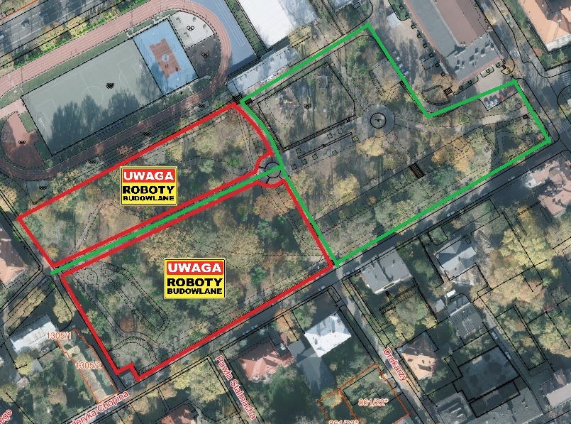 Pozostała część parku, na której prowadzone będą roboty budowlane, została tymczasowo wygrodzona.