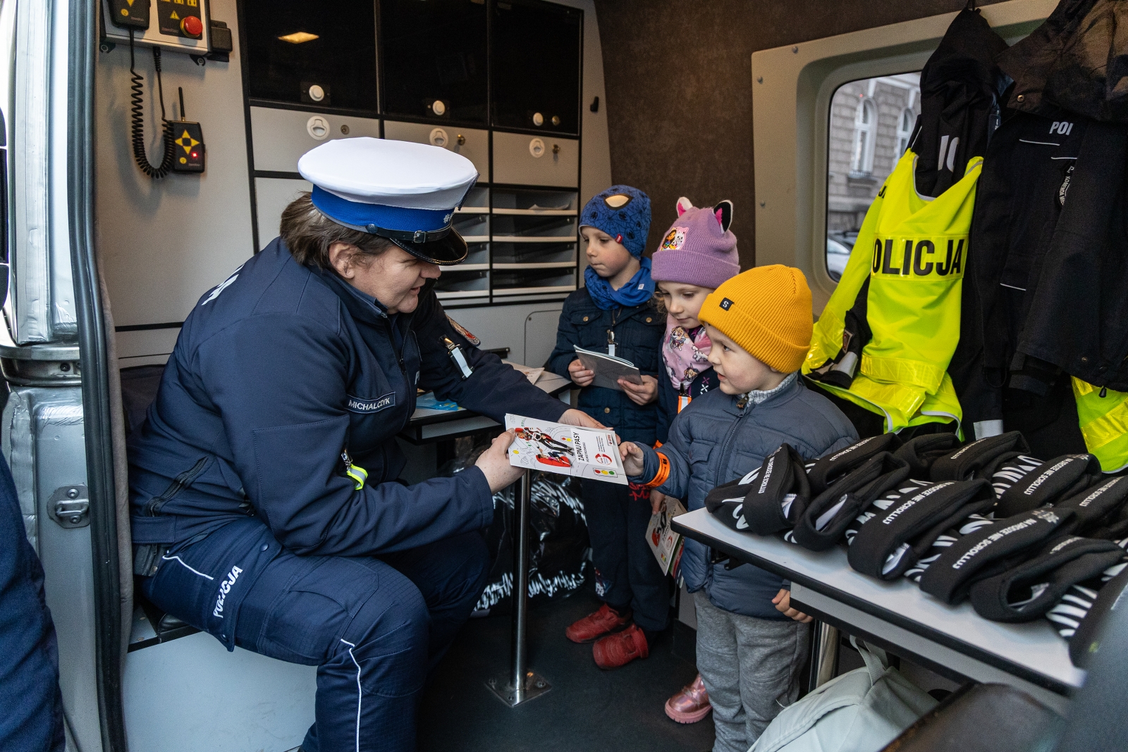 Akcja nie bez kozery odbyła się przy jednym z najbardziej uczęszczanych przejść dla pieszych w centrum miasta – mianowicie na pasach łączących plac Ratuszowy z ulicą Ratuszową. Na placu rozłożyło się miasteczko służb, do którego mógł zajrzeć każdy przechodzień. WORD rozdawał elementy odblaskowe i odblaskowe czapki, a także zachęcał do skorzystania z symulatora dachowania, w którym można było się przekonać, jak bardzo ważne jest zapinanie pasów podczas jazdy. Z ich Wordusiem - czyli maskotką instytucji - można było sobie zrobić zdjęcie albo zatańczyć. Funkcjonariusze policji pokazywali od środka swój wóz, który na co dzień obsługuje wypadki drogowe, a chętnym zakładali alkogogle, symulujące efekty upojenia alkoholem. Swoje pojazdy na placu mieli również ratownicy medyczni i strażacy-ochotnicy z OSP Stare Bielsko. Wszystkiego można było dotknąć, o wszystko zapytać.