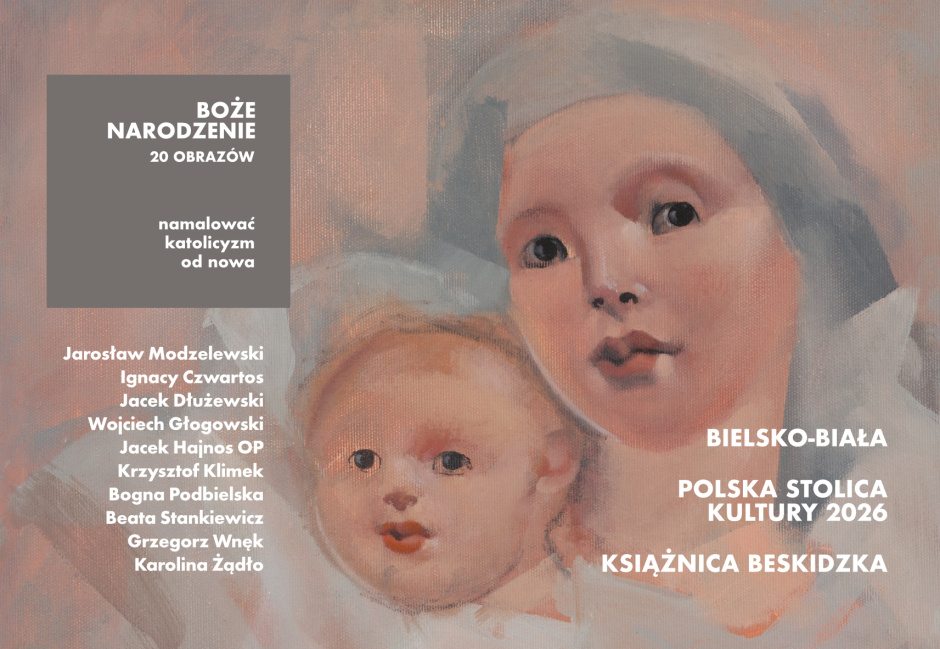 Ponad dwadzieścia współczesnych przedstawień Bożego Narodzenia można oglądać w Książnicy Beskidzkiej w Bielsku-Białej. To kontynuacja cyklu, który bielska publiczność przyjęła z dużym zainteresowaniem wiosną 2025 roku w Bielskim Centrum Kultury im. Marii Koterbskiej. Na wystawie obrazy Jarosława Modzelewskiego, Ignacego Czwartosa, Jacka Dłużewskiego, Wojciecha Głogowskiego, Jacka Hajnosa OP, Krzysztofa Klimka, Bogny Podbielskiej, Beaty Stankiewicz, Grzegorza Wnęka oraz przedstawicielki młodego pokolenia artystów – Karoliny Żądło.