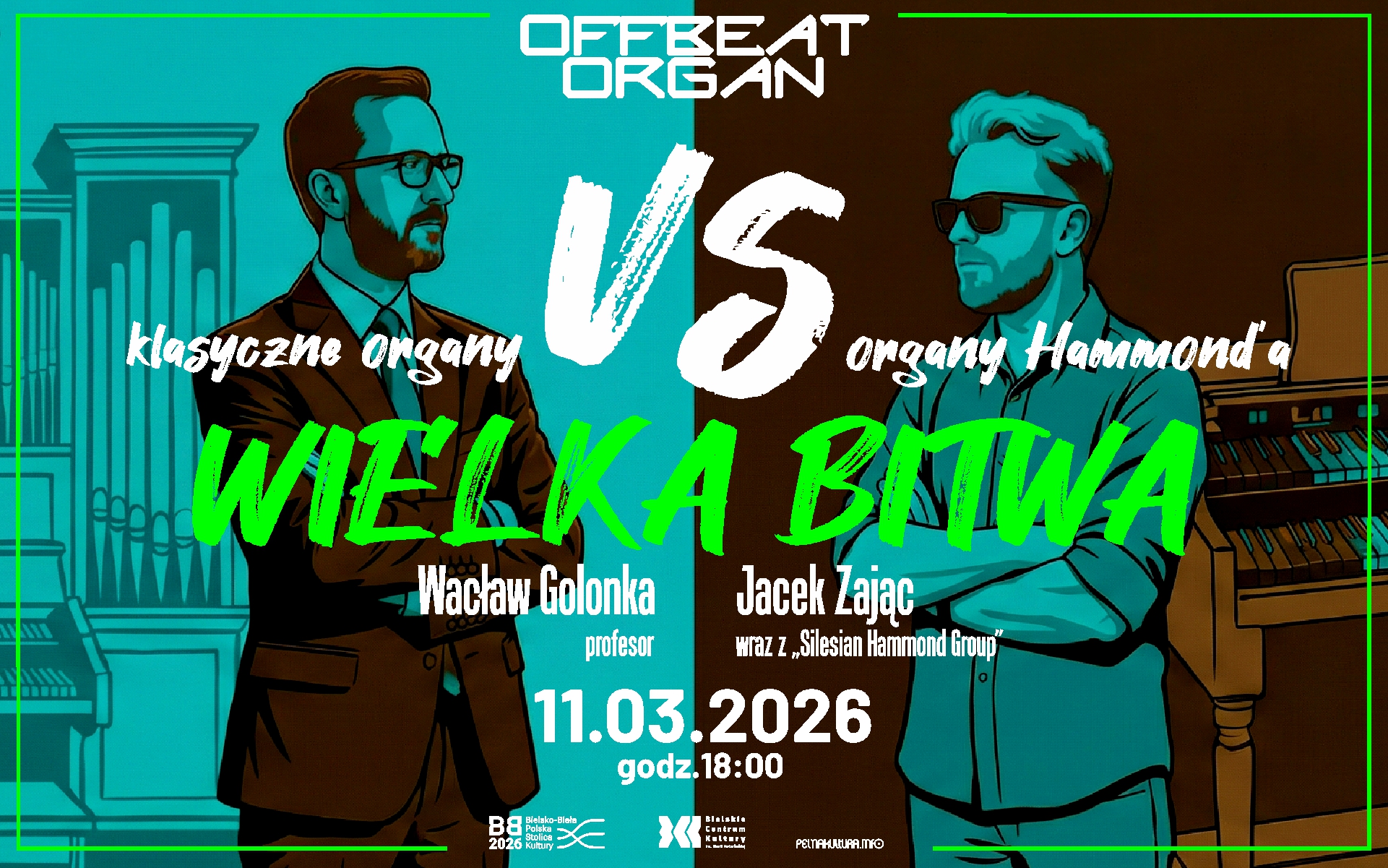 - Czy organy mogą stanąć do pojedynku? W Bielsku-Białej – jak najbardziej! Już 11 marca w Bielskim Centrum Kultury publiczność będzie świadkiem niezwykłej konfrontacji dwóch światów: monumentalnych organów piszczałkowych i legendarnego Hammonda – informuje BCK. - To właśnie idea cyklu OffBeat Organ – pokazać, że organy to nie tylko muzyka sakralna i klasyka, ale energia, emocje i współczesne brzmienie. OffBeat łamie schematy i udowadnia, że organy potrafią zabrzmieć świeżo, nowocześnie i zaskakująco. Podczas Wielkiej bitwy naprzeciw siebie staną dwa bardzo podobne i jednocześnie zupełnie różne instrumenty. Łączy je jedno słowo – organy. Dzieli niemal wszystko - piszczałki kontra elektromagnetyczny generator tonów, potężna przestrzeń koncertowej sali kontra klubowa energia, klasyczna tradycja kontra rozrywkowy puls.