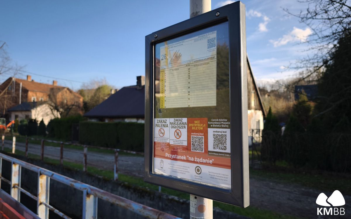 Oprócz rozkładów w gablotkach znalazły się również dodatkowe informacje, m.in. o sieci dystrybucji i cenniku biletów, które po zeskanowaniu kodu QR odsyłają bezpośrednio do podstron na stronie internetowej komunikacja.bielsko-biala.pl, w tym do interaktywnej mapy punktów dystrybucji biletów – informuje Wydział Komunikacji Urzędu Miejskiego w Bielsku-Białej.