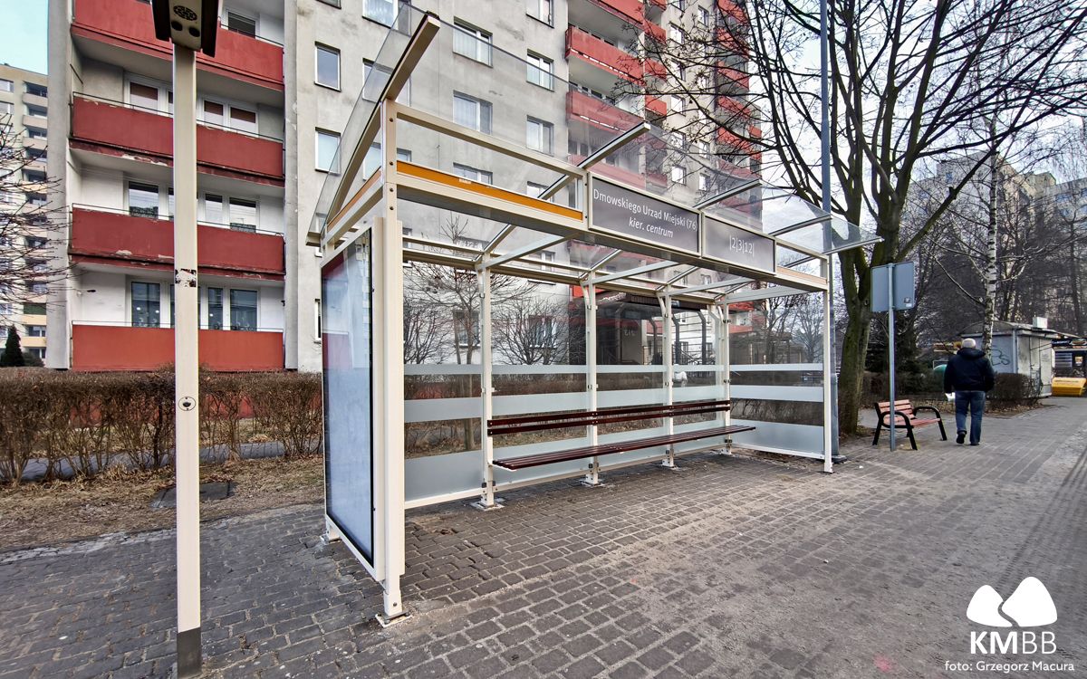 Pod koniec ubiegłego roku Wydział Komunikacji Urzędu Miejskiego w Bielsku-Białej zamontował nową wiatę przystankową typu konserwatorskiego na przystanku Dmowskiego Urząd Miejski (76).